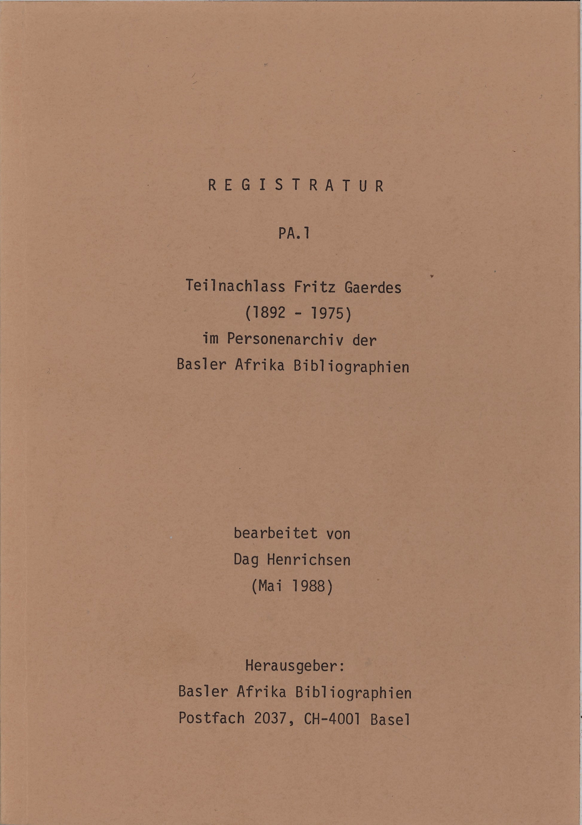 PA. 1 Teilnachlass Fritz Gaerdes (1882–1975) im Personenarchiv der Basler Afrika Bibliographien